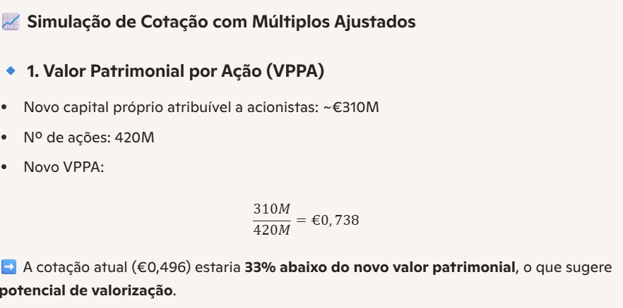 Com múltiplos ajustados, a ação pode atingir €1,00 ou mais, especialmente se os resultados do 2º semestre confirmarem a tendência.