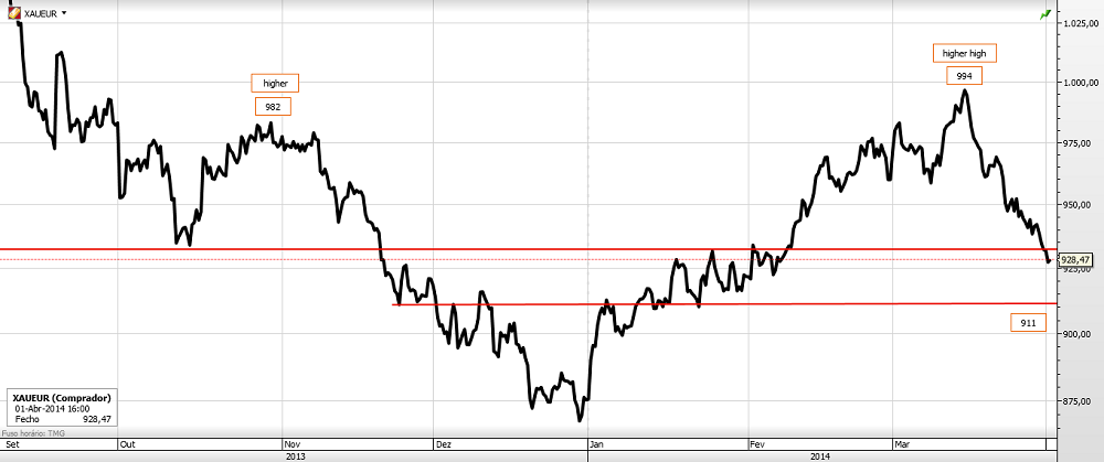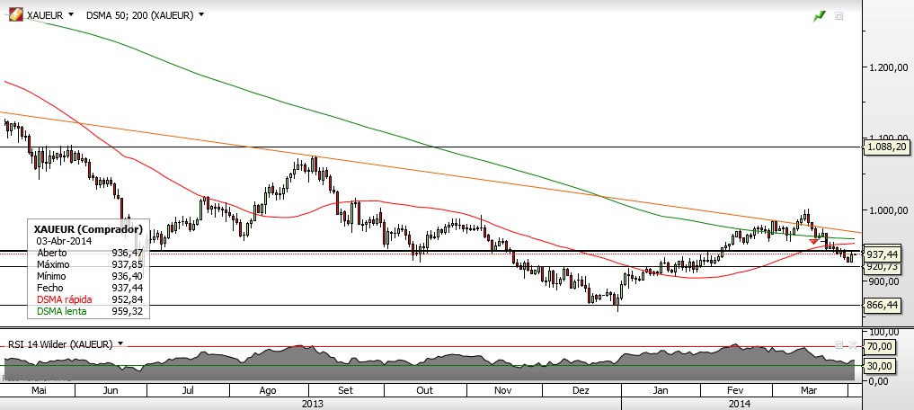 PS: O uunico trade no ouro em 2014 foi longo a 911, com piramidagem 3 para 1 a 927, cm venda total a 968 euros