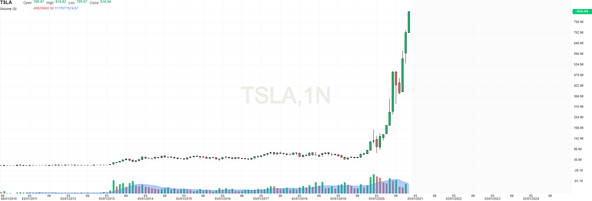 Para quem investiu 500.000 usd em Tesla, fruto da venda de um T3 em Oeiras em Junho de 2010, hoje tem 90.000.000 usd - ou seja tornou-se "um gajo 900M" (passou a millionário sem mexer um palha), à grotesca cotação actual de 880usd.