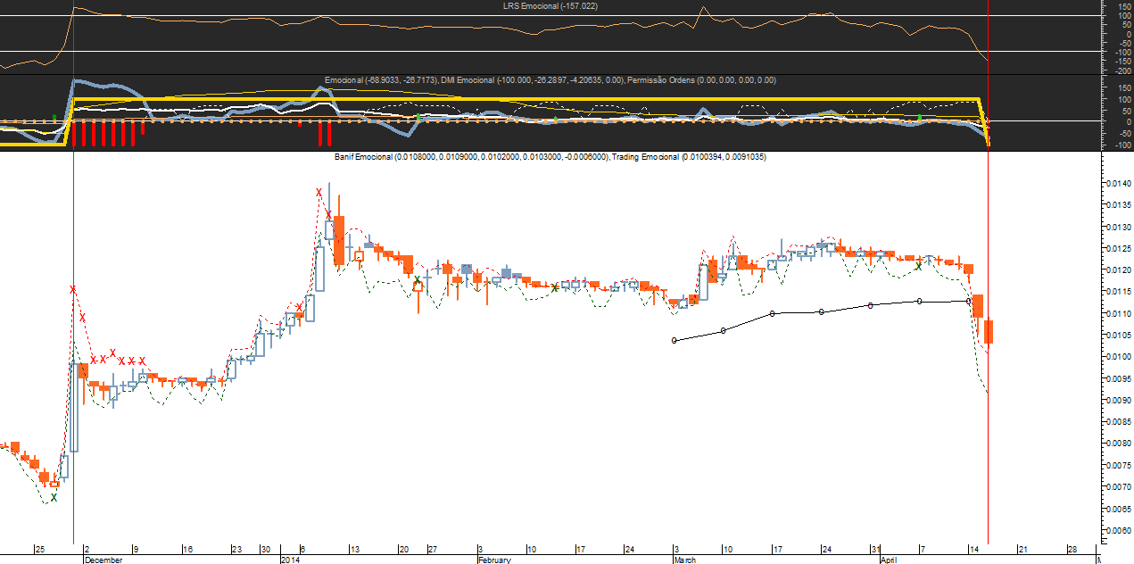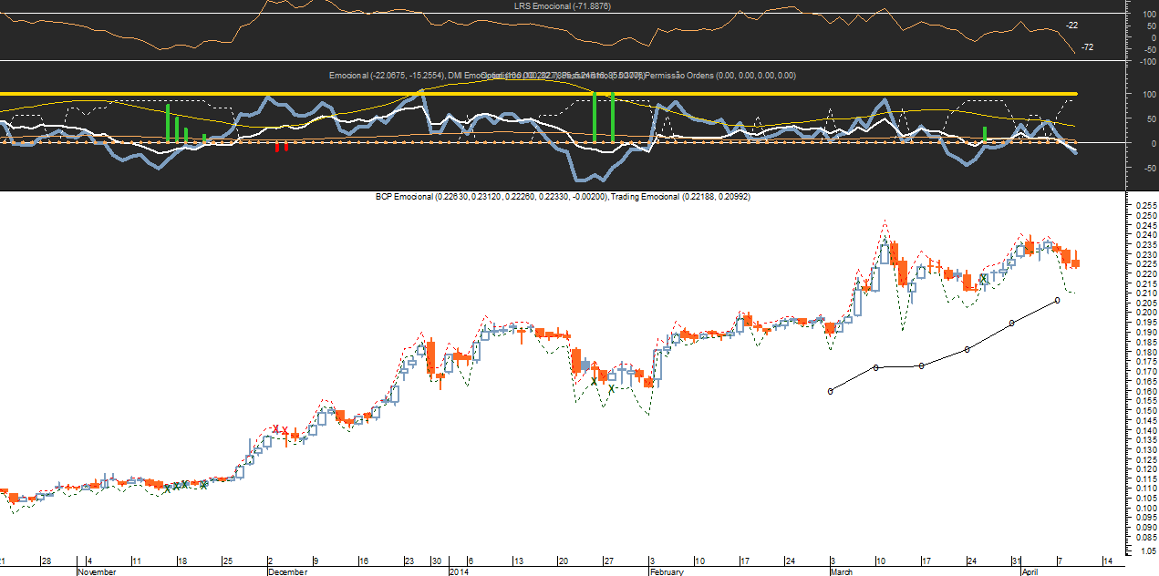 Na realidade não se verificou tal sinal no sistema de trading devido ao facto do Banif ter recuperado razoavelmente dos mínimos do dia na altura do fecho com um substancial auemnto da volatilidade, mas esteve lá próximo! O “Emocional” continua no papel pacientemente neutro, aguardemos as próximas sessões…
