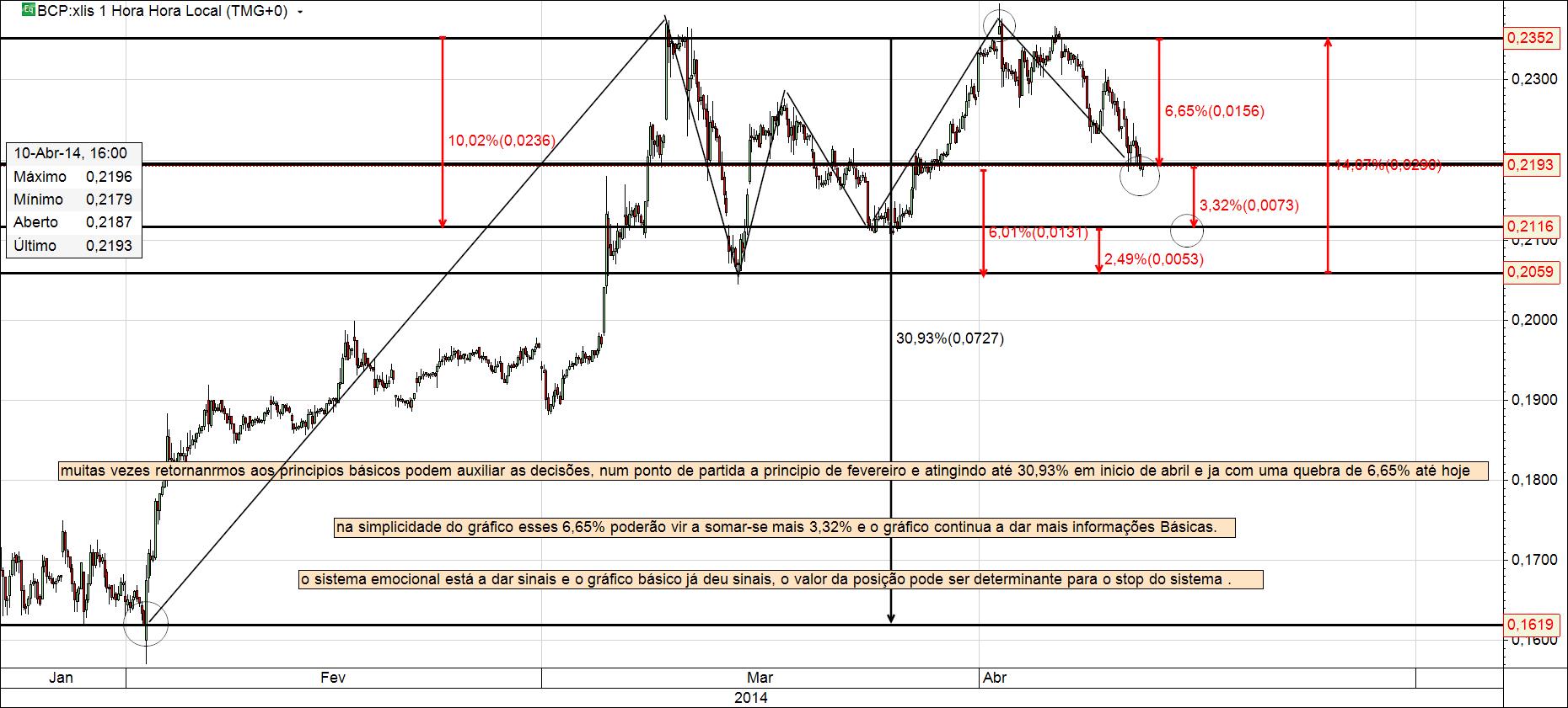 - Amigos Leo e Tennis, como vão ver mais abaixo no caso do BCP ainda não foi desta, esteve lá quase mas o sinal de saída foi evitado por um triz, no entanto se o fecho hoje tivesse ocorrido abaixo dos 0,2175 era que nem espinhas. Para este programa não há suportes nem resistências, apenas desequilíbrios emocionais em escalas temporais diferenciadas que deverão ser aproveitadas sempre que surja uma oportunidade em que a probabilidade de inversão do sentido de mercado seja elevada…