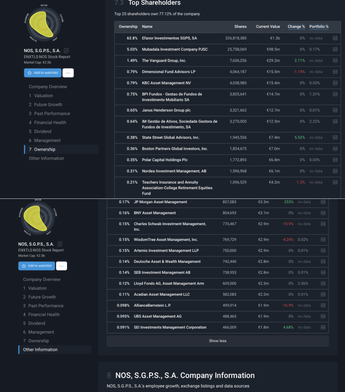 acresce, a SONAE não desejar que o preço da NOS suba muito, pois pode ir comprando a quem se cansar de olhar para o preço, e desistir
