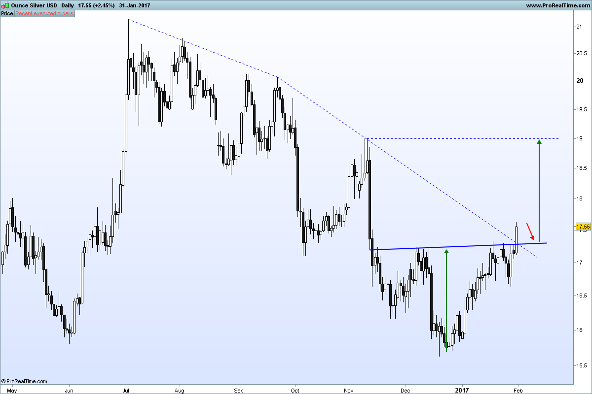 primeiro sinal de um possivel movimento em alta da prata, a par com o movimento no usd.