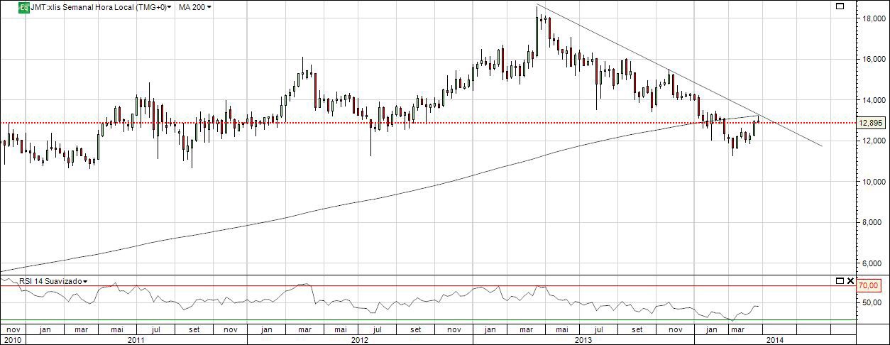 A questão é: Qual a amplitude desse movimento descendente ? Isso só se vai saber no dia 30-04-2014 pois se os resultados e fundamentais da JM no 1º Trimestre superarem as expectativas então acho que está criado o clima para a acção subir definitivamente e passar de vez a Bull. Se, por outro lado, os resultados e fundamentais forem abaixo do esperado então significa que a AT e a AF estão sincronizadas para um cocktail explosivo de queda. E ai sim contam comigo em short pois vão ser forte concerteza (abaixo de 11€ seguramente).
