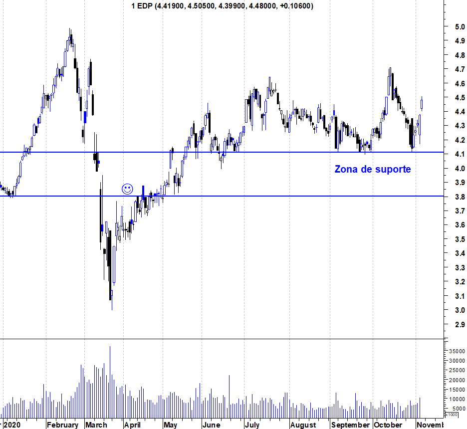A EDP é um desses exemplos. Desde 2012 que a acção vive um “Bull Market”, com uma valorização superior a 250%. É verdade que, durante estes 8 anos, houve longos períodos em que a acção lateralizou, mas isso faz parte dos “Bull Markets”, momentos mais fulgurantes e outros de consolidação.