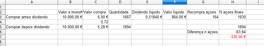 As minhas contas, referem-se unicamente à possibilidade de comprar antes ou depois dos dividendos.