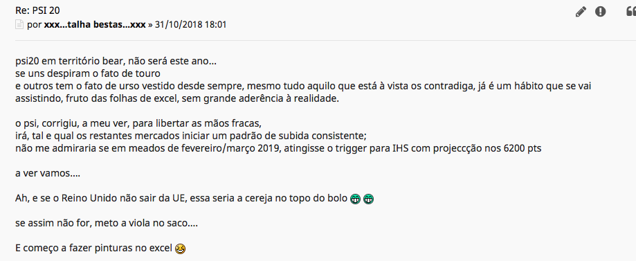 Fopram apagados uma série de posts. Este tópico é para se debater o PSI, deixem lá as questões pessoais para outros espaços na Internet. O mercado tem estado animado e é sobre ele que queremos falar. Quem se desviar disto, verá os seus posts apagados.