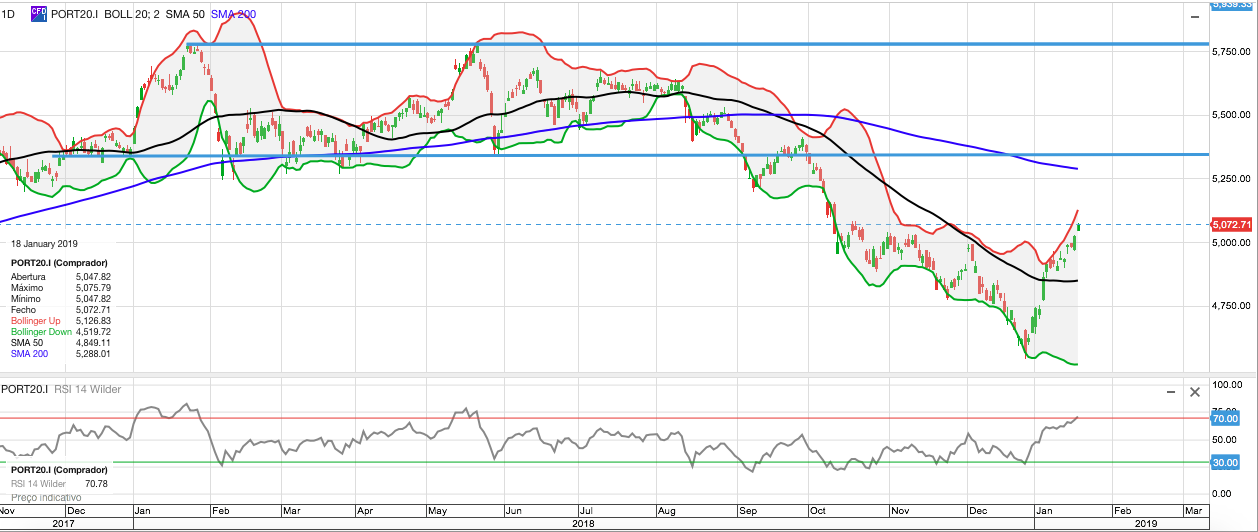 O PSI seguiu o guião esperado de inicio de ano e subiu as 3 semanas até ao fecho de contratos e atingindo a zona de resistência dos 5050.