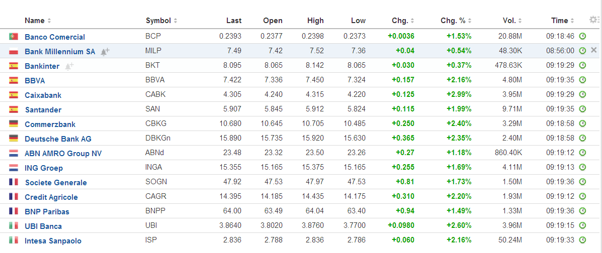 A banca europeia acordou hoje bem disposta.
