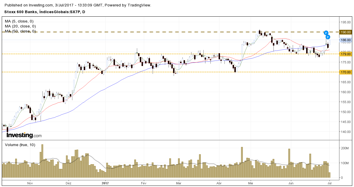 A forte performance do setor na Europa , tem sido para já um garante de estabilidade na cotação. Hoje EUROSTOXX 600 sobe 1.77%