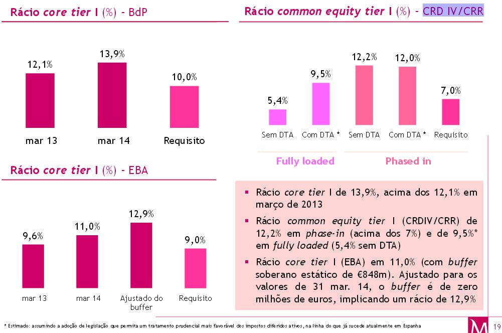Na perspectiva de Basel III ( Fully loaded )sem os DTAs os rácios caíam logo para 5,4% quando o mínimo exigido serão de 7%.