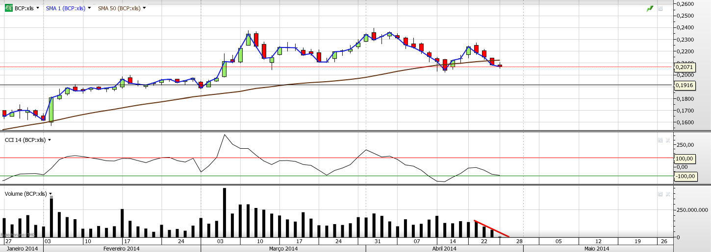 o bcp corrigiu dos 0,20 aos 0,162 antes dos resultados de 2013 em 03 fev e teve 3 semanas a corrigir, após os resultados arrancou novamente quebrando os 0,20.