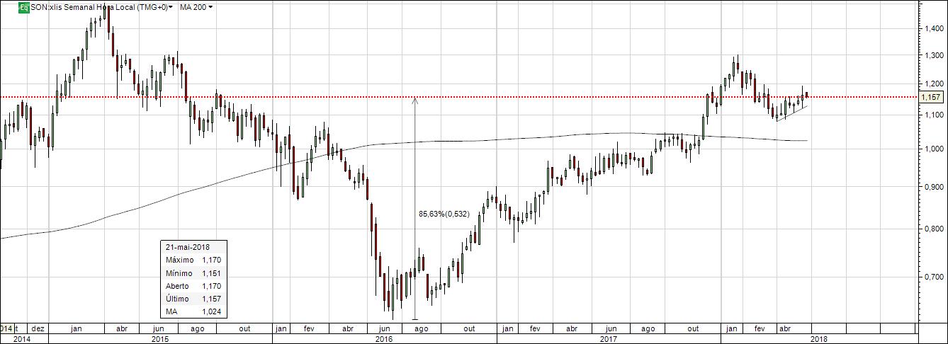 Hoje com o mercado perto de máximos anuais dos 5800 Pontos , SON perde 0.35% nos 1.14