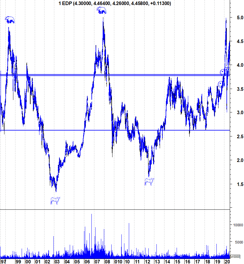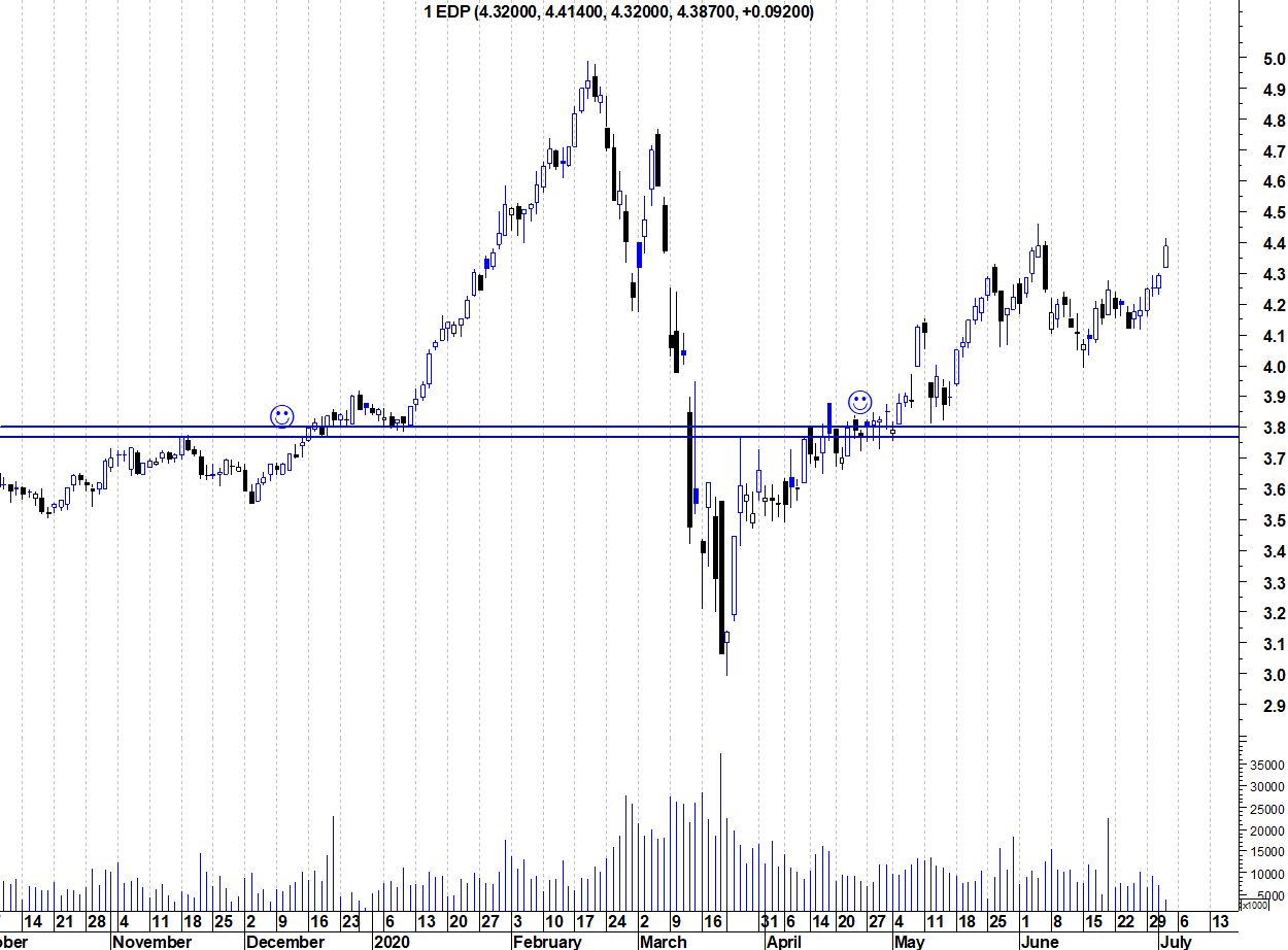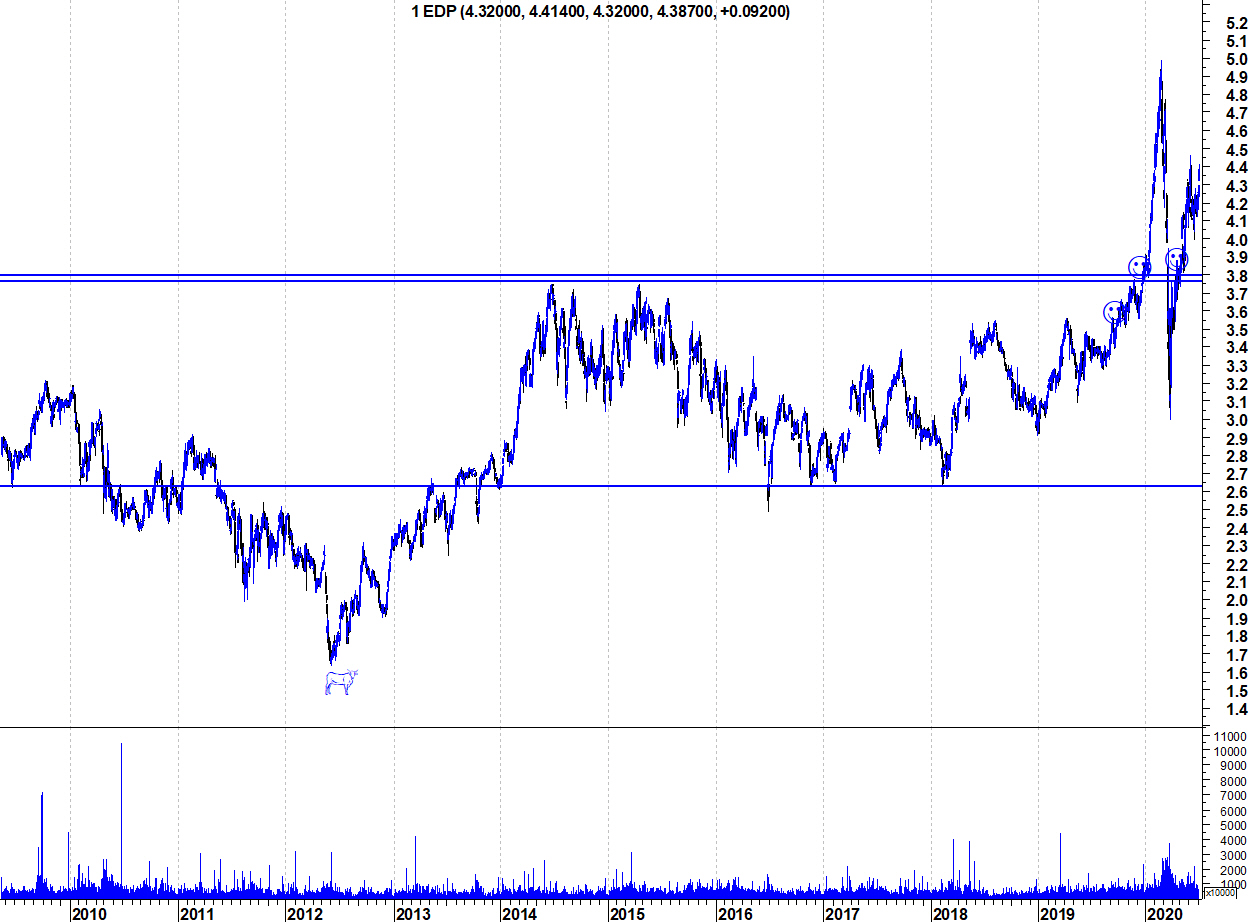 Deixo aqui os gráficos da EDP para ilustrar os vossos comentários de uma acção que vive um longo "Bull Market".