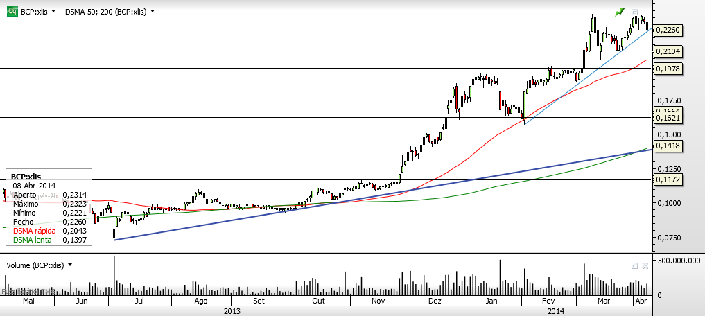 investpouco Escreveu:AT2014 acrescento aqui uma coisa, relativa ao que disseste sobre as emas, apesar de algumas cotações a respeitarem bem (neste caso o bcp respeita a ema20 e em caso mais correctivos a ema50).