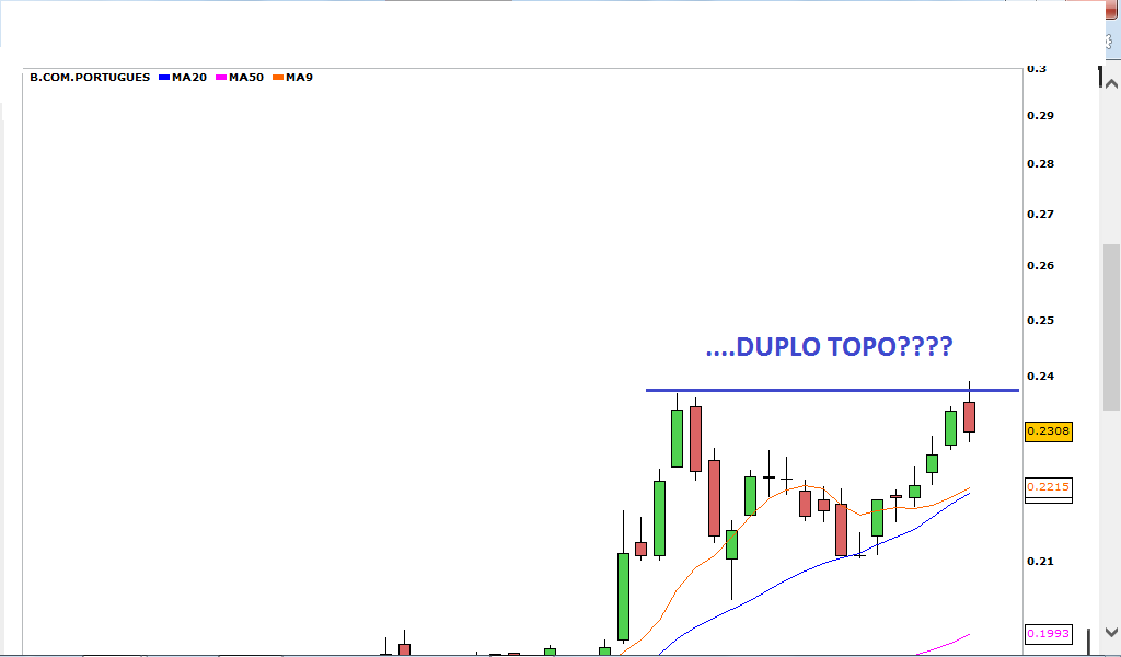 Para ser ativado um Duplo Topo tem de quebrar em baixa os 0,21...
