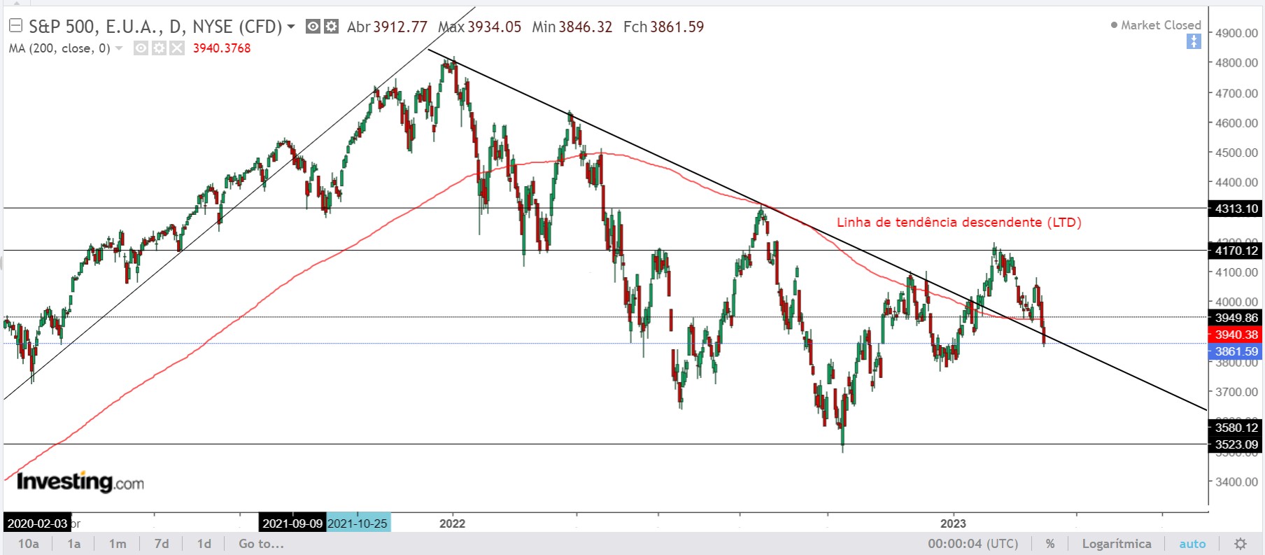 deixo abaixo um gráfico diário do spx onde podemos verificar o seu desempenho técnico.