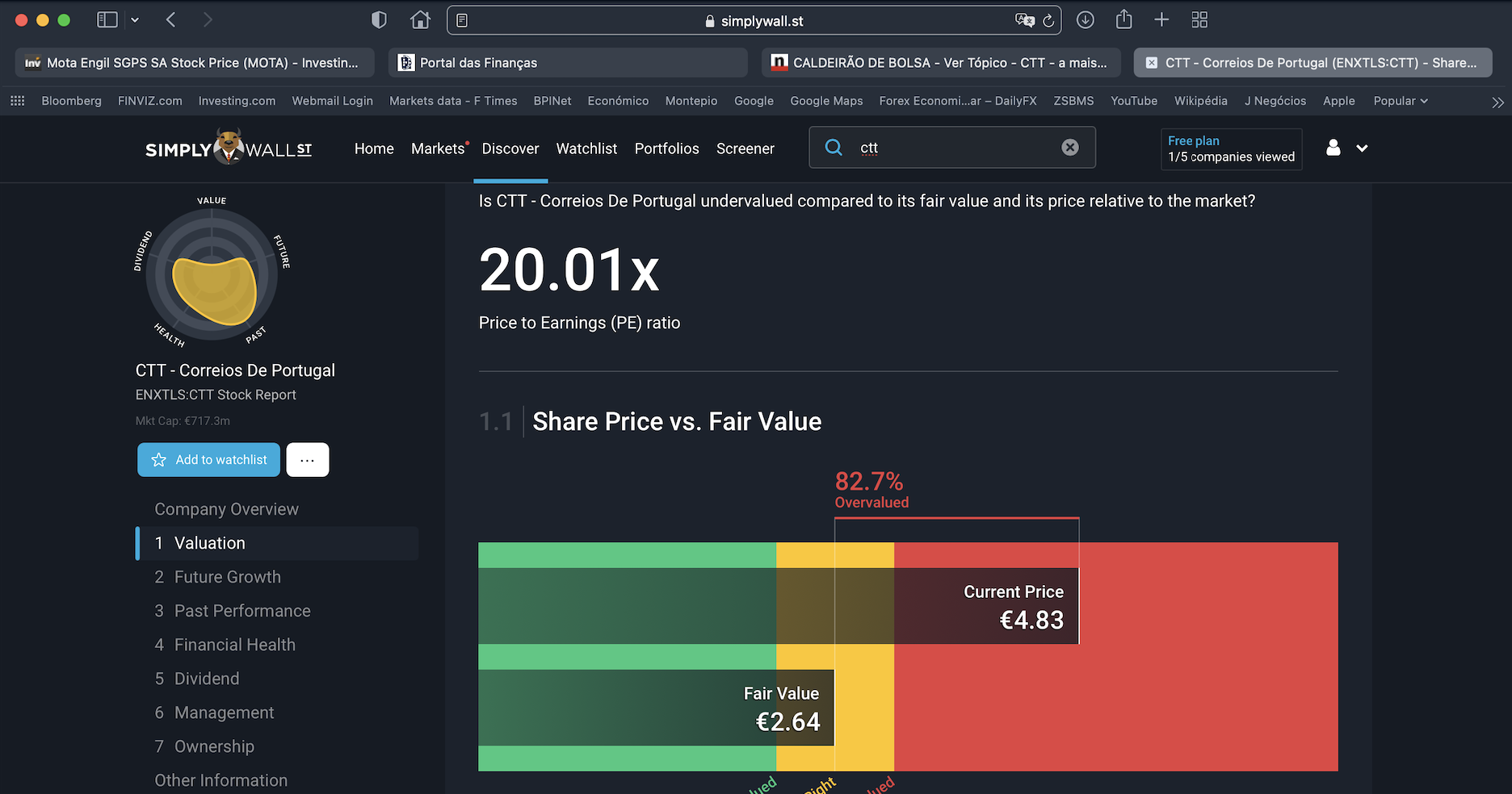 nota - não detenho a ação mas a mesma estará, ainda assim, pr´´oxima do equilíbrio T/F » meu fair value CTT 4.55€ / pior "fair value" Institucional 2,64€ (melhor 6,1€) , que anexo mas com o qual não concordo de todo.