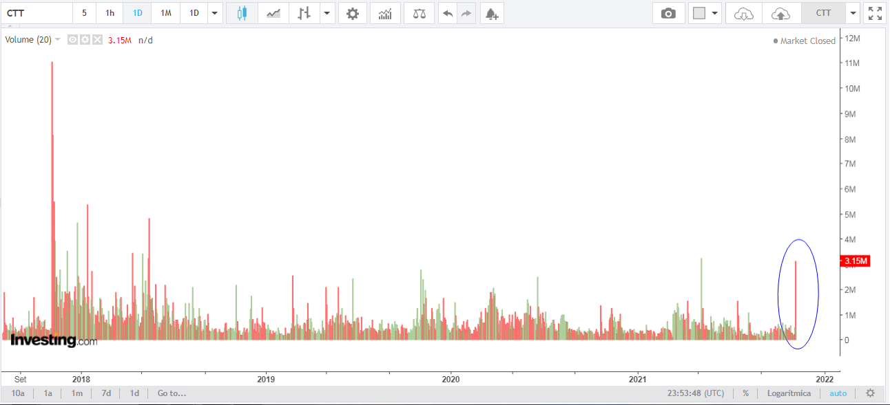 Porque os CTT tiveram uma subida muito mais acentuada, particularmente tendo em conta os resultados frouxos que apresentam.