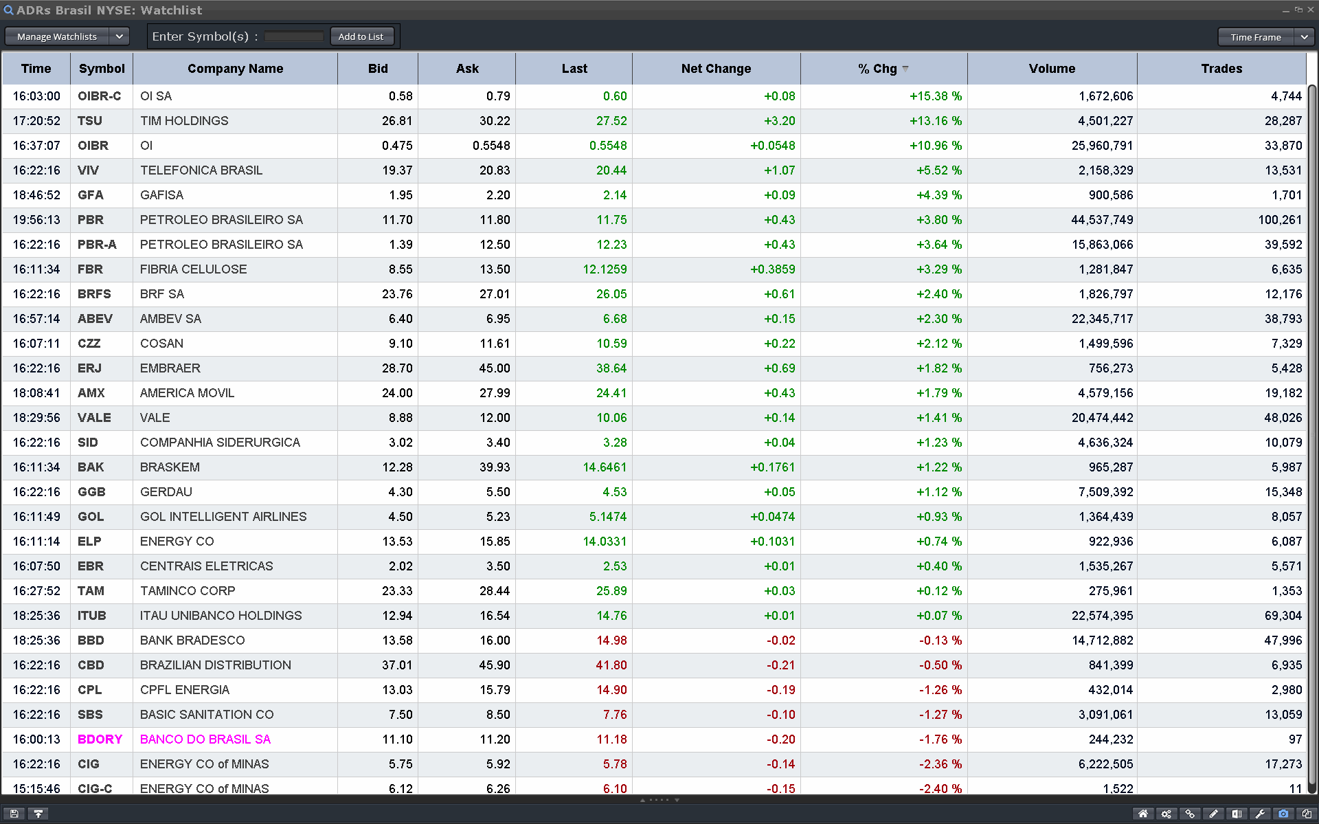 Afther-hours de 31-10-2014 ADRs Brasil NYSE