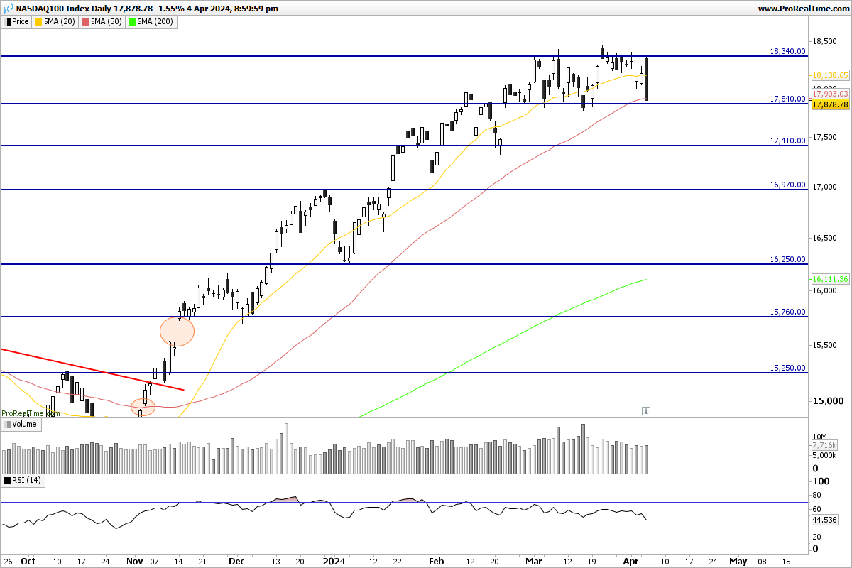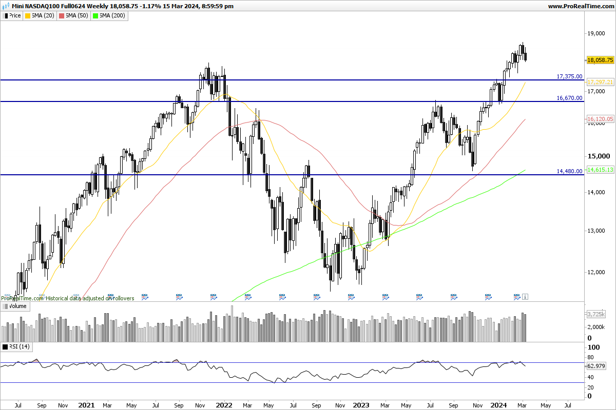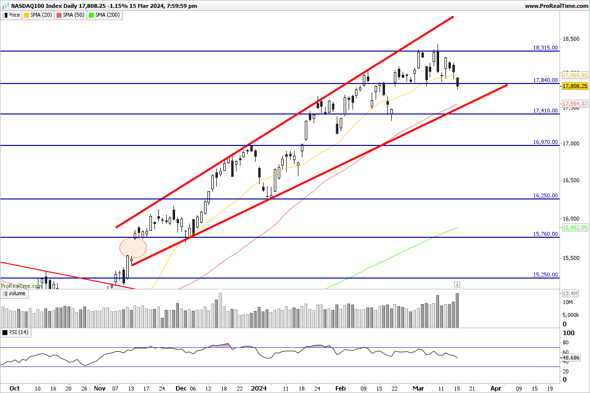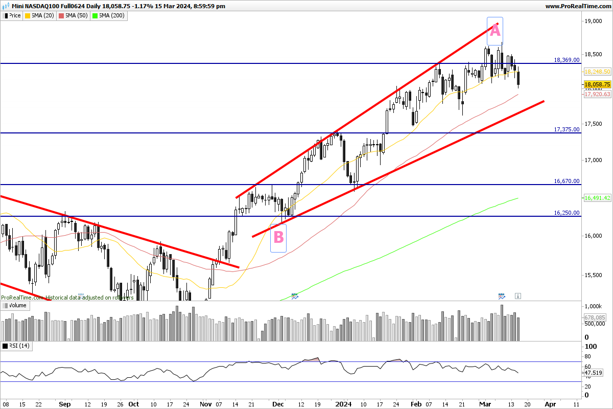 O nasdaq 100 tem agora o alvo em 18500. O facto de não ter caído sexta feira parece significar que a NVIDIA se dirige para 1000, o que animará o índice.