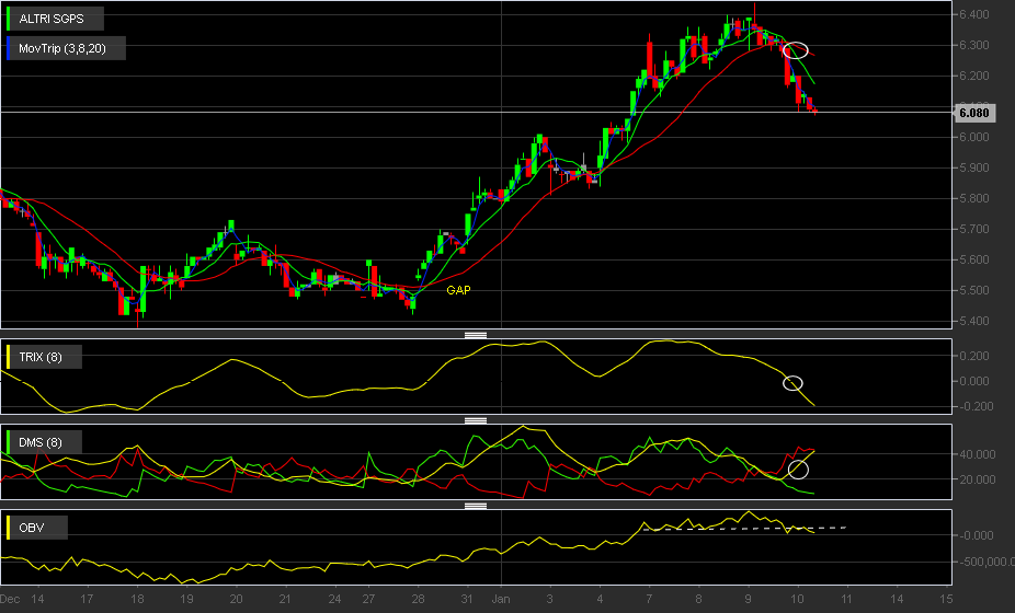 Tenho a dizer que olho para a Altri como a acção com o comportamento técnico mais previsível que negociei até hoje, com algum sucesso. Ao contrário das anteriores duas subidas vertiginosas, não entrei no suporte antes desta terceira que aparenta ter iniciado, pois não vi a quantidade de "volume verde" que vi nas anteriores e me levaram a embarcar. Por isso mesmo, tenho o pressentimento que a Altri ainda volte a visitar o suporte antes de disparar a sério, falta entrar o dinheiro grande no título que saiu na última queda. Posso estar a ler mal os gráficos, mas é isso que me parece ver neles. De resto, é uma empresa que aparenta estar barata e com bom DY. Veremos se me faz a vontade de revistar o suporte nos 5,35€.. :)