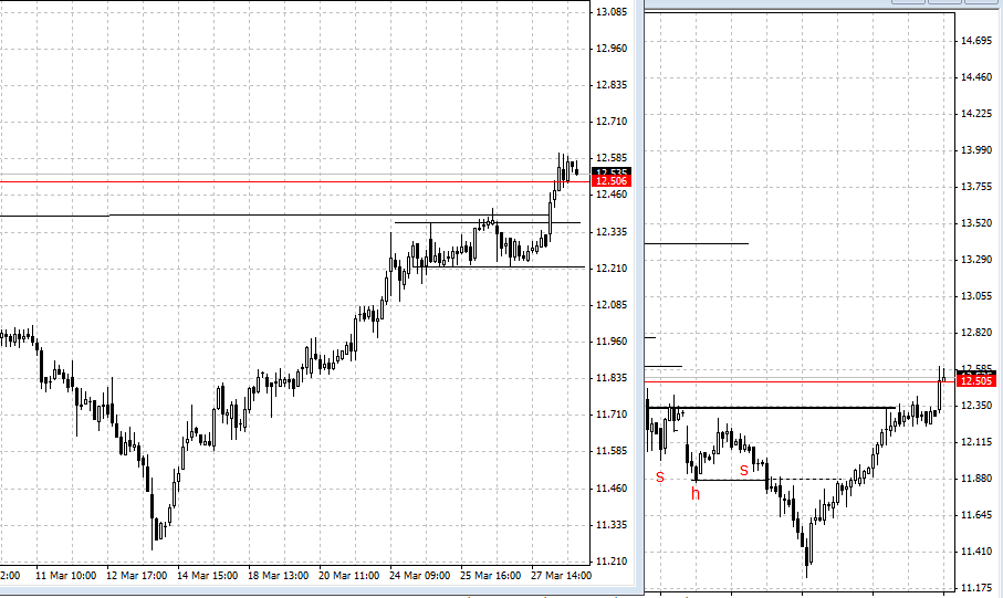 Sem espelho para fazer o que aconselhou o Tiago pt, fiz o pino para inverter a visão do gráfico. (Não sei se vou fazer sempre assim sempre que queira localizar um H&S invertido).