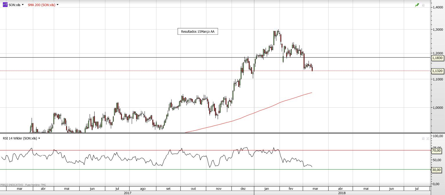 Mas o mercado aparentemente está , com a fraca evolução descendente da SON nos últimos tempos antes da apresentação dos resultados amanhã.