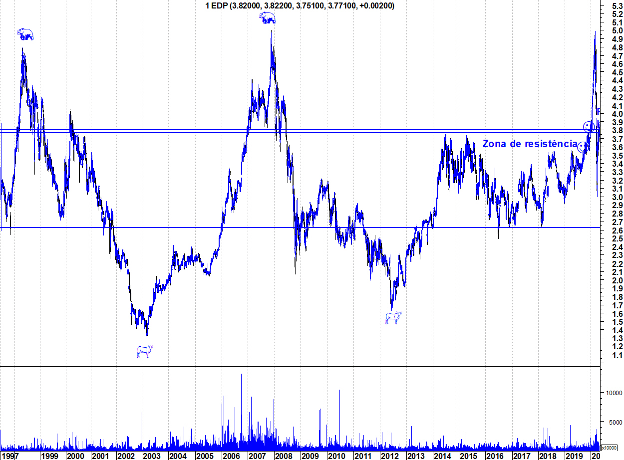 Deixo os gráficos actualizados da EDP, mantendo aquilo que venho afirmando nas últimas semanas sobre a importância da resistência dos 3,8.