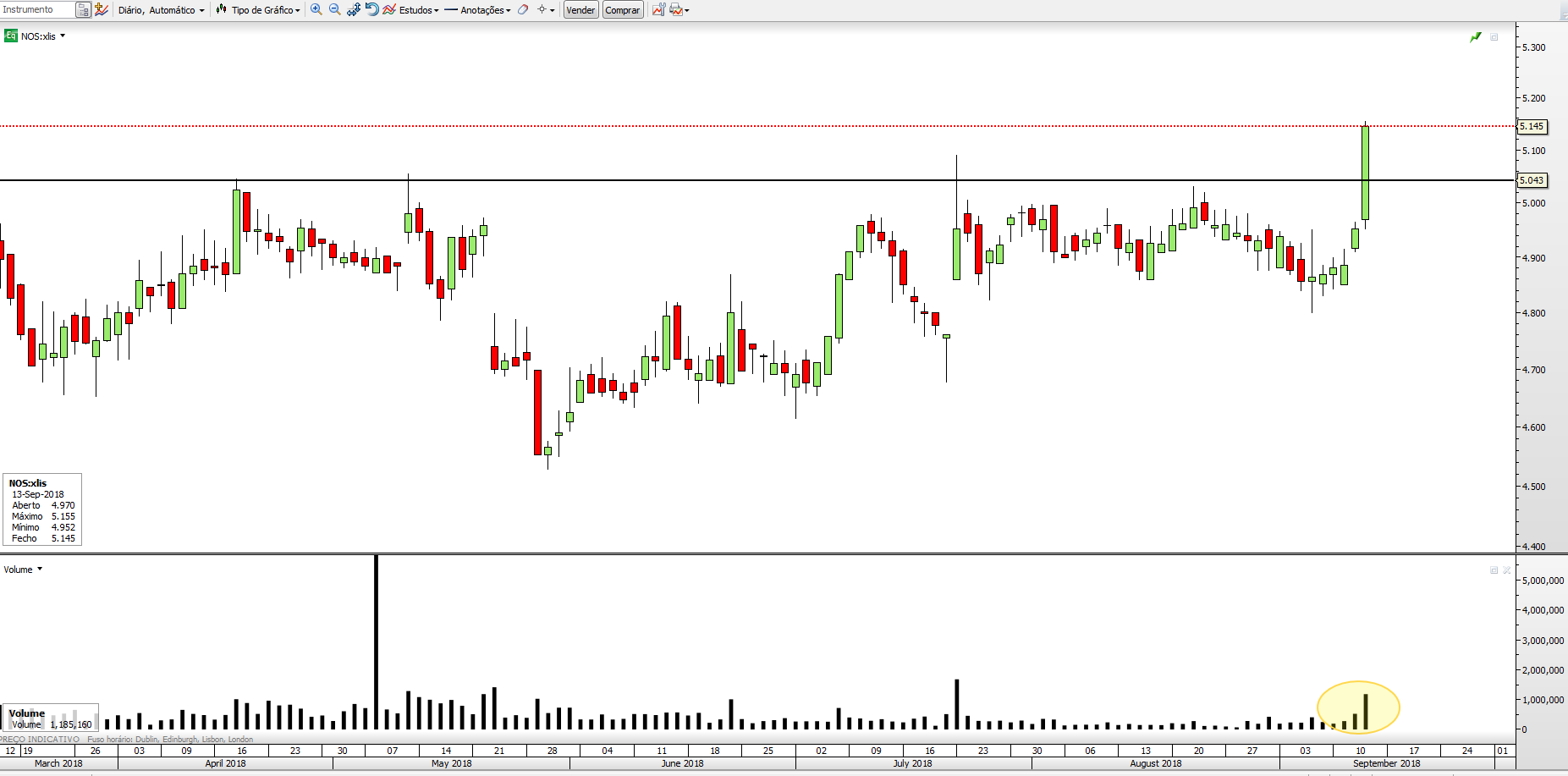No meu entender, a cotação da NOS encontra-se a testar uma resistência em torno de 5,20 euros.