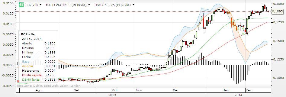 Com as mais valias que realizei, vou ponderar qual da banca entrar, passada esta correcção. Escusado será dizer que caso o BCP comece a lateralizar neste valores, não será escolhido de certeza, ou vai rumo a norte e confirma o breakout acima dos 0.195. Ou só entro caso venha até ao suporte mais abaixo, na zona de suporte mais forte que vislumbro, nos 0.157~0.164.