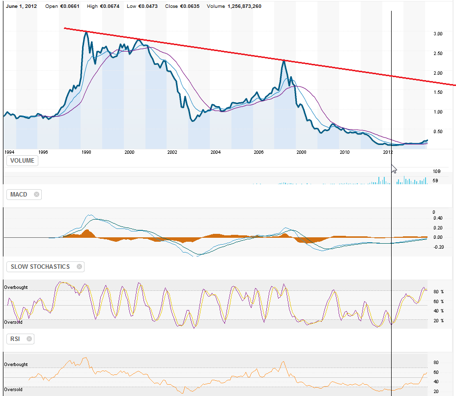 Nao vou afirmar que vai acontecer, mas e apenas para abrir as mentes e ter uma perspectiva fora do momento presente e do time frame de 1/2 anos, embora sei que os que nunca acreditavam na descida aos valores de 2012 (.04 centimos), sei que agora nao acreditam que podera subir a 1/1.50€... Mas como eu digo sempre, "Stocks are all about being rational... buy when its going up, sell when its going down... its that simple".