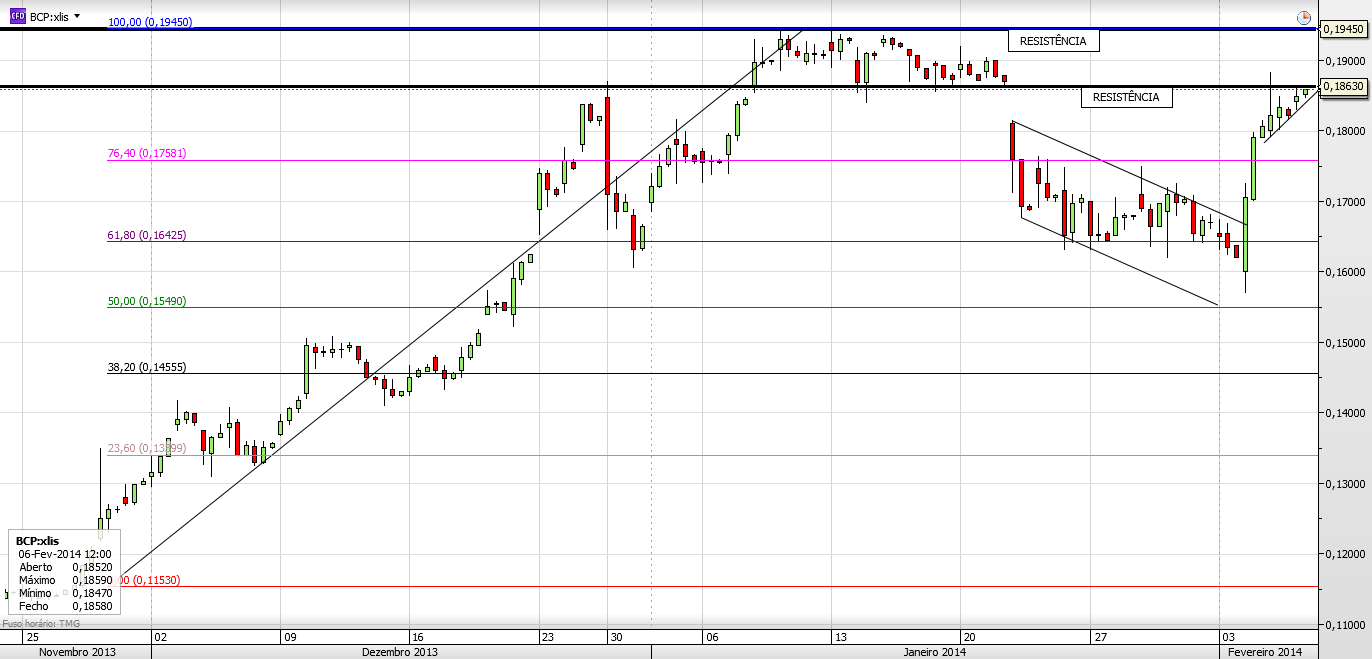 Como já disse eu olho para o gráfico e estabeleço os meus planos de trading com base neles, estas conversas são paralelas, atrevi-me a falar um pouco disto apenas para espicaçar o Investpouco, para ver se retirava dele alguma informação interessante. Até ao momento nada, não respondeu à única pergunta que lhe fiz, não explicou como chegou ao target dos 50 cêntimos no final deste ano, em suma, não fundamentou nada... dessa foram para que serve alguém dizer aqui que acha que o BCP vai faler X no final do ano?? Seja X 12, 30, 50 ou 80 cêntimos... se por acaso chegar aos 50 cêntimos este ano (como disse seria uma grande surpresa para mim, mas ainda bem!) o que é que isso nos ensinará? Nada, ele falou nos 50 cêntimos como eu posso falar nos 60, ou nos 12, sem fundamentos que nos possam ensinar alguma coisa, este tipo de palpites são idênticos a eu dizer que nesta semana, no Euromilhões, vão sair os números 23 e 37... os outros não digo! :mrgreen: :mrgreen: