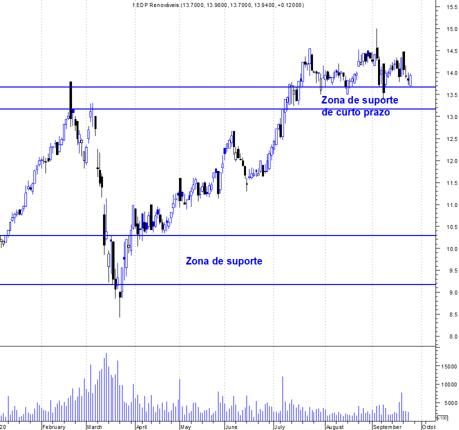Ainda este mês tocou nos 14,50 €. E na 6-f. esteve em 13,62. Como isto é lateralizar? Se aumentar o gráfico aparece outra coisa. Eu não chamo a isto lateralizaçao.