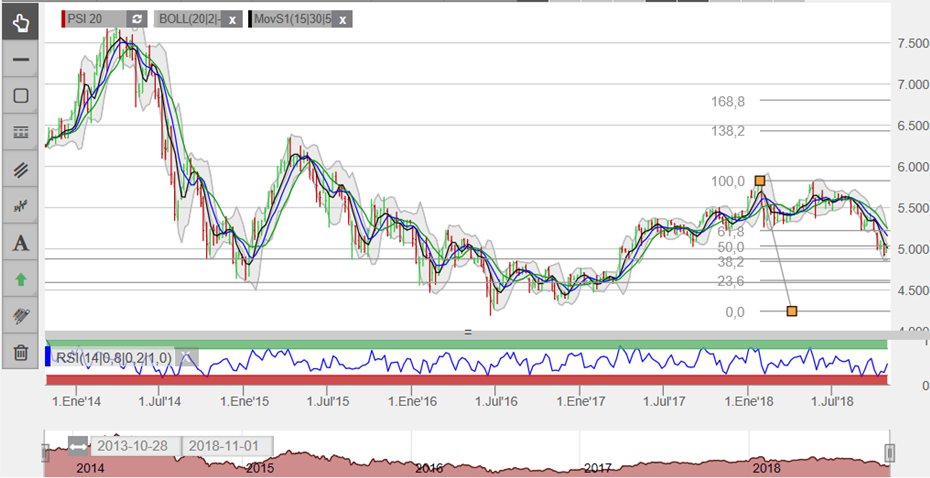 PSI desde que cruzou em alta a MM50 semanal em Março de 2017 , subiu sempre acima da MM50 , até AGOSTO de 2018