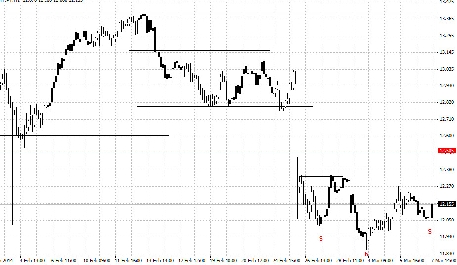 ... será que os bulls vao ter descanso e ainda vai aos 12.70-12,80.o gráfico é de 1h mt ruido vale o que vale(possivelmente nada),mas tem lá um pradraozinho de inversão para o curtíssimo prazo