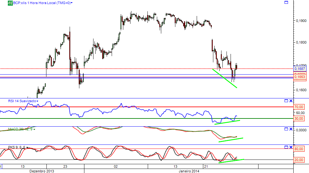 Divergências positivas no horário, numa acção que está claramente bull no médio e longo prazo é de aproveitar, por isso mesmo carreguei o burro esta manhã a 0,1663 + 0,1650 + 0,1647 (linhas azuis) média a 0,1653 (linha vermelha).