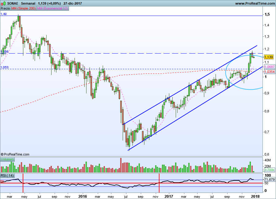 Bateu por esses valores durante 2 dias, mesmo com o volume ligeiramente mais elevado que o normal, mas não consigo considerar os 1,12 como um suporte. O único digno desse nome anda pelos 1,04€ onde a cotada poderá lá ir se eventualmente corrigir com os fechos do ano.