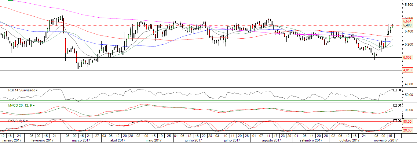 contudo vamos acompanhando se fecha em valores muito acima 5,26 que será o topo do canal descendente...