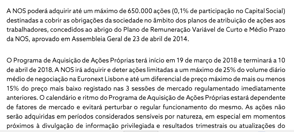 É dito especificamente no comunicado que poderão comprar até 0.1% das acções somente para depois as poderem atribuir no plano de entrega aos trabalhadores como remuneração variável.