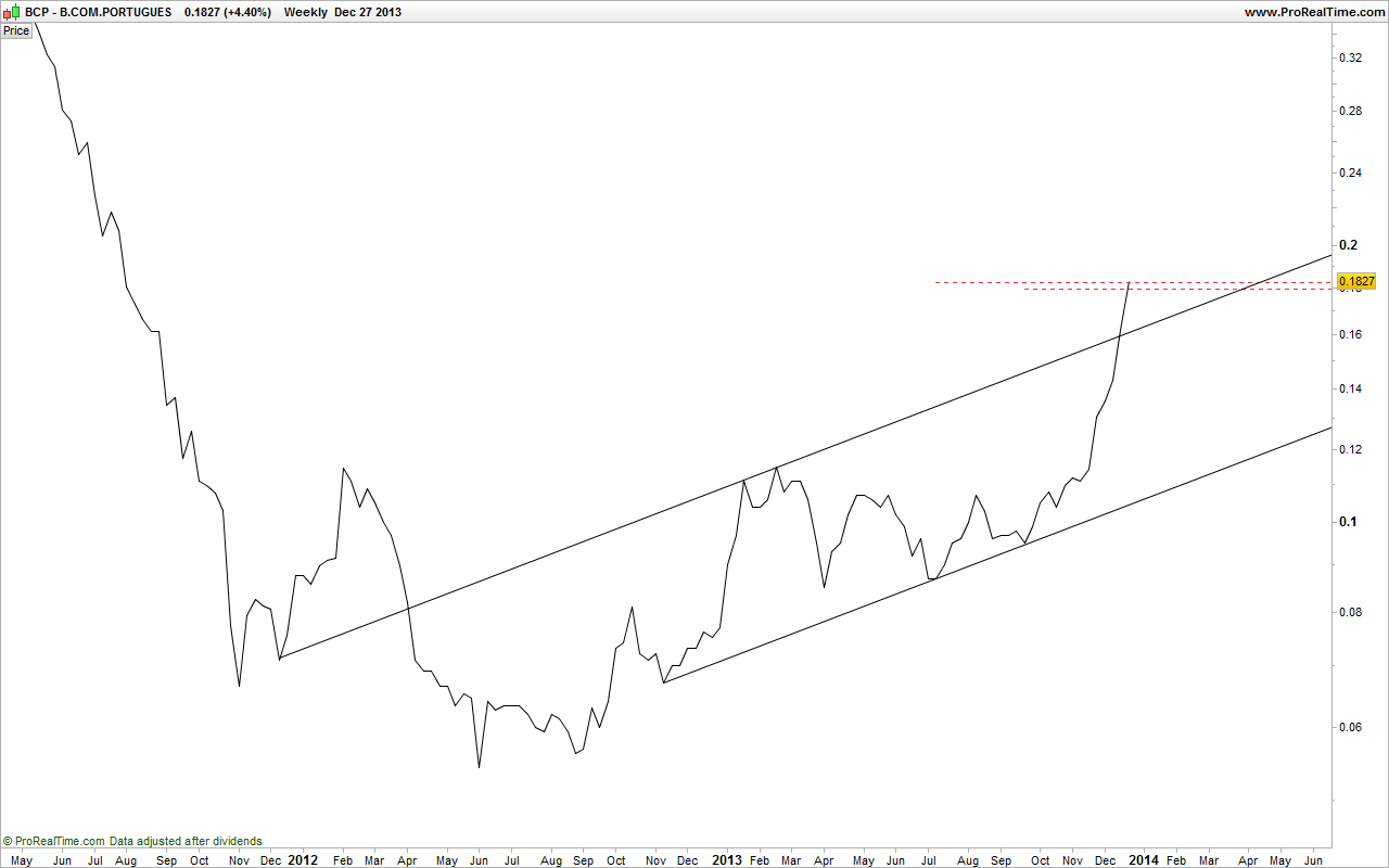 Segundo a minha opinião uma retração muito ligeira é necessária para o BCP. O BCP neste momento é como um comboio. Está a toda a velocidade que vai abrandar um pouco numa próxima curva mas a seguir continua o seu andamento até à próxima resistência