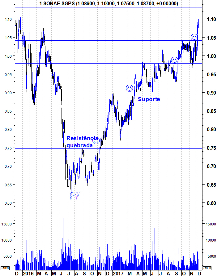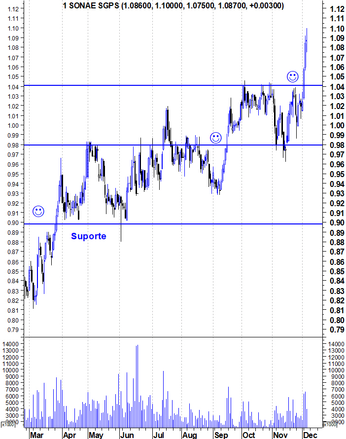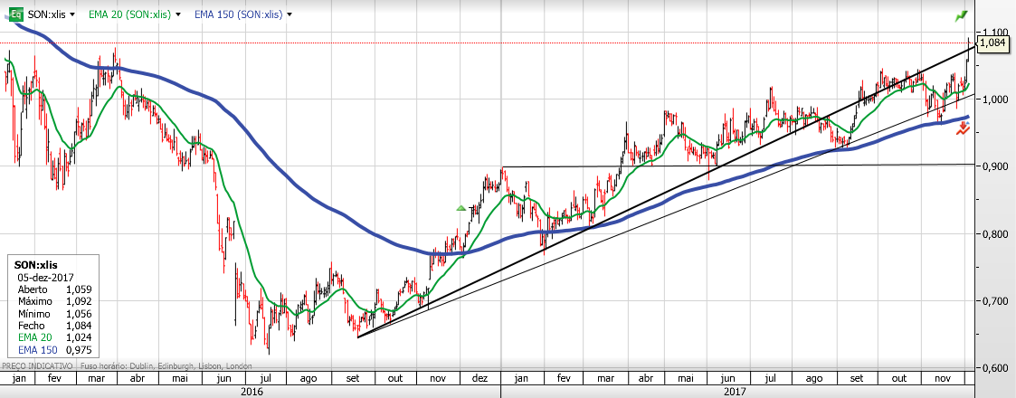 A SONAE está num Bull muito consistente e com retrações ou consolidações muito saudáveis.
