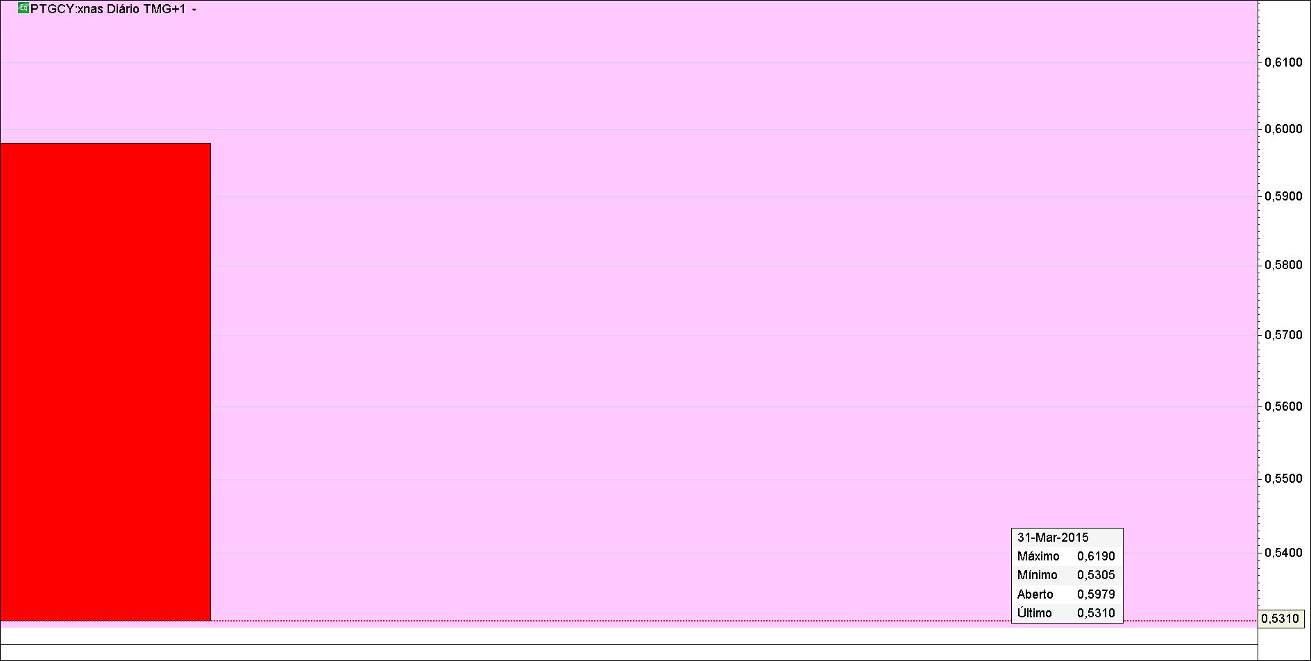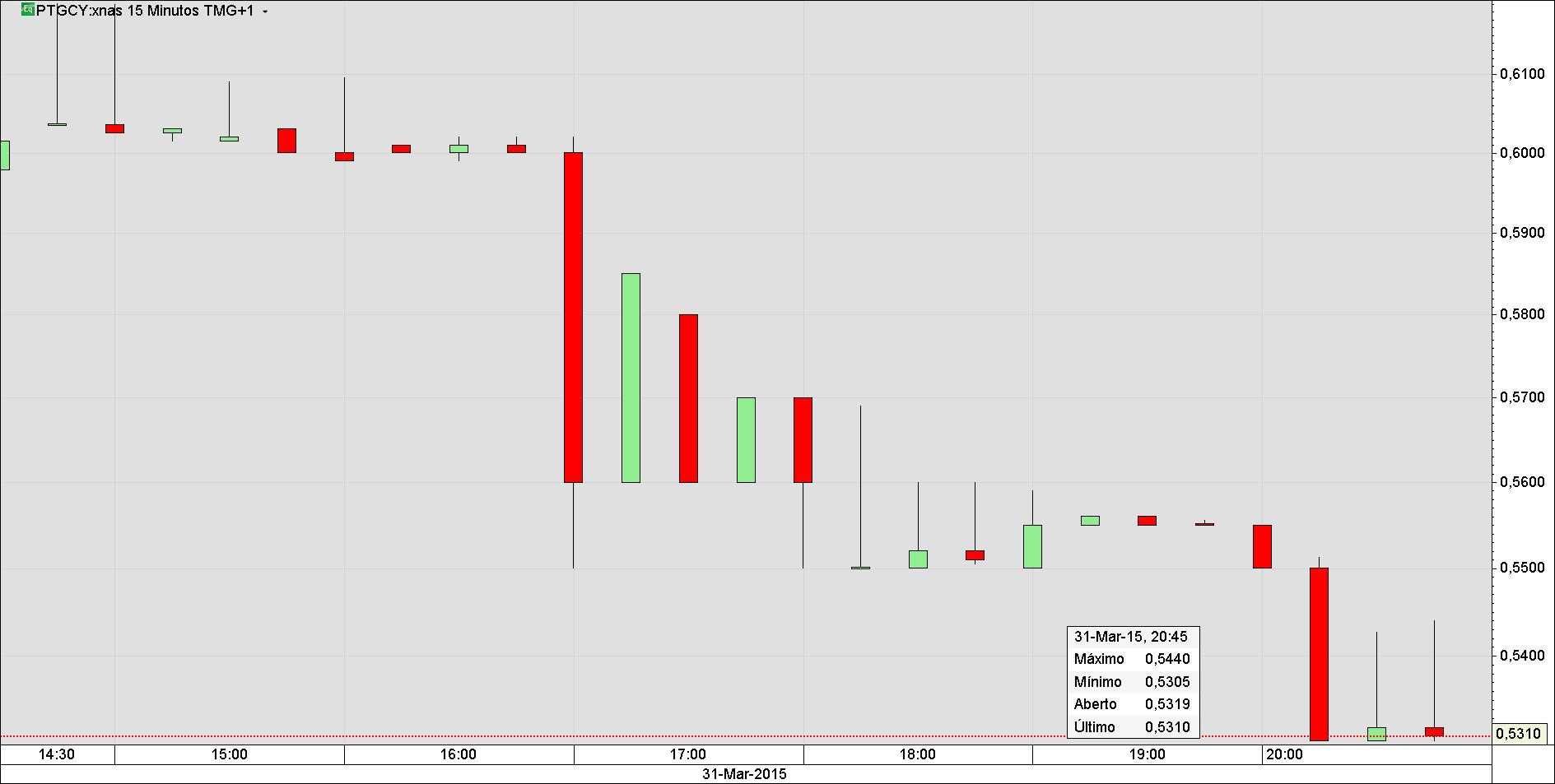 "Quebrado o suporte a que, em 13/03/2015, fiz alusão, e que o gráfico que apresento mostra, a PTC está efetivamente a cotar sem rede. Abaixo só há o abismo (não há qualquer suporte digno do nome).