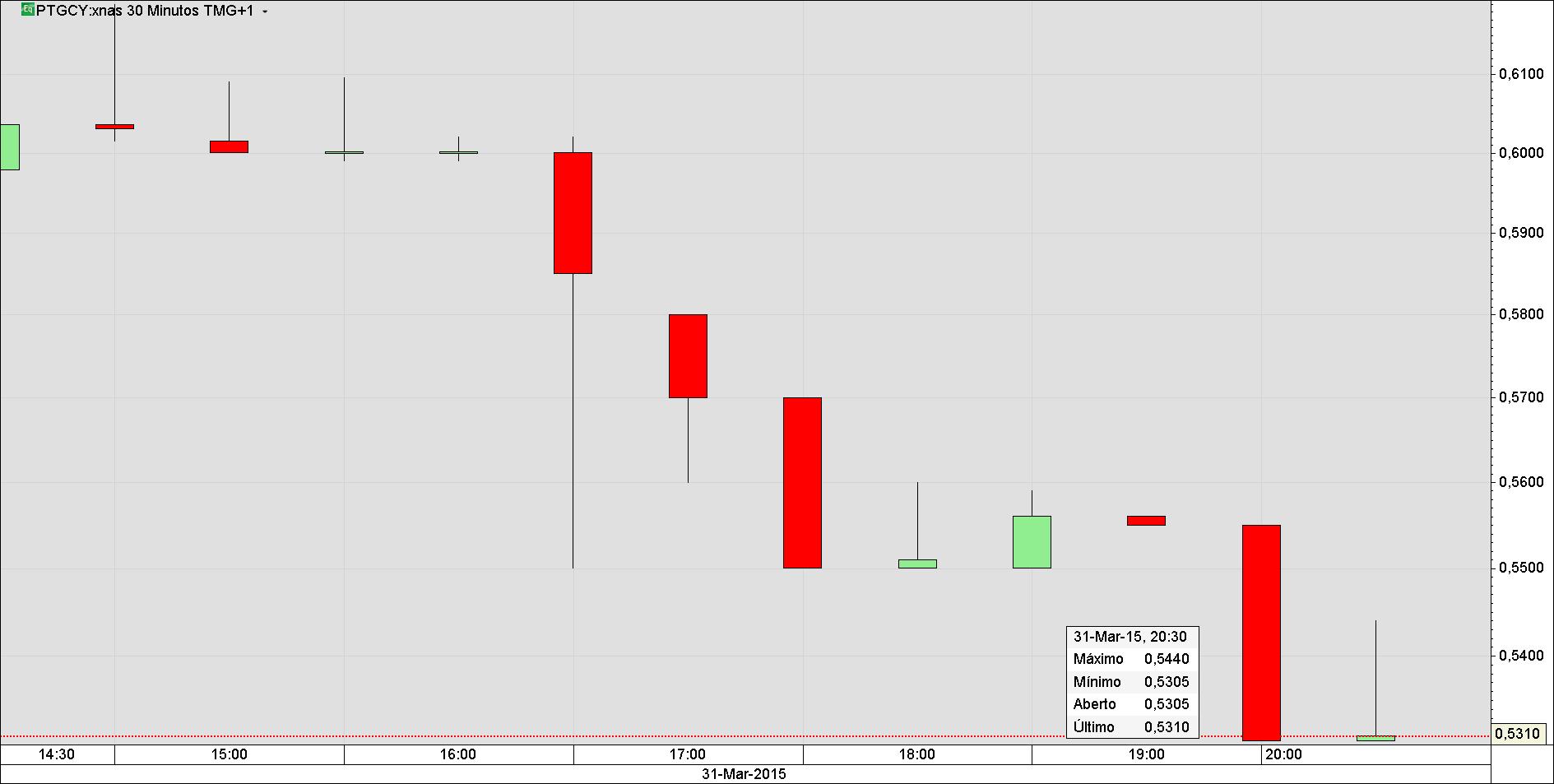 "O gráfico que apresentei foi construído com a cotação de fecho da PTC em cada sessão de bolsa. Como se pode verificar, observando o gráfico apresentado, a cotação mínima de fecho da PTC, registada em 19/01/2015, foi 0,61 euro. Se a PTC vier a fechar abaixo de 0,61 euro é muito, muito, muito, mau sinal ...".