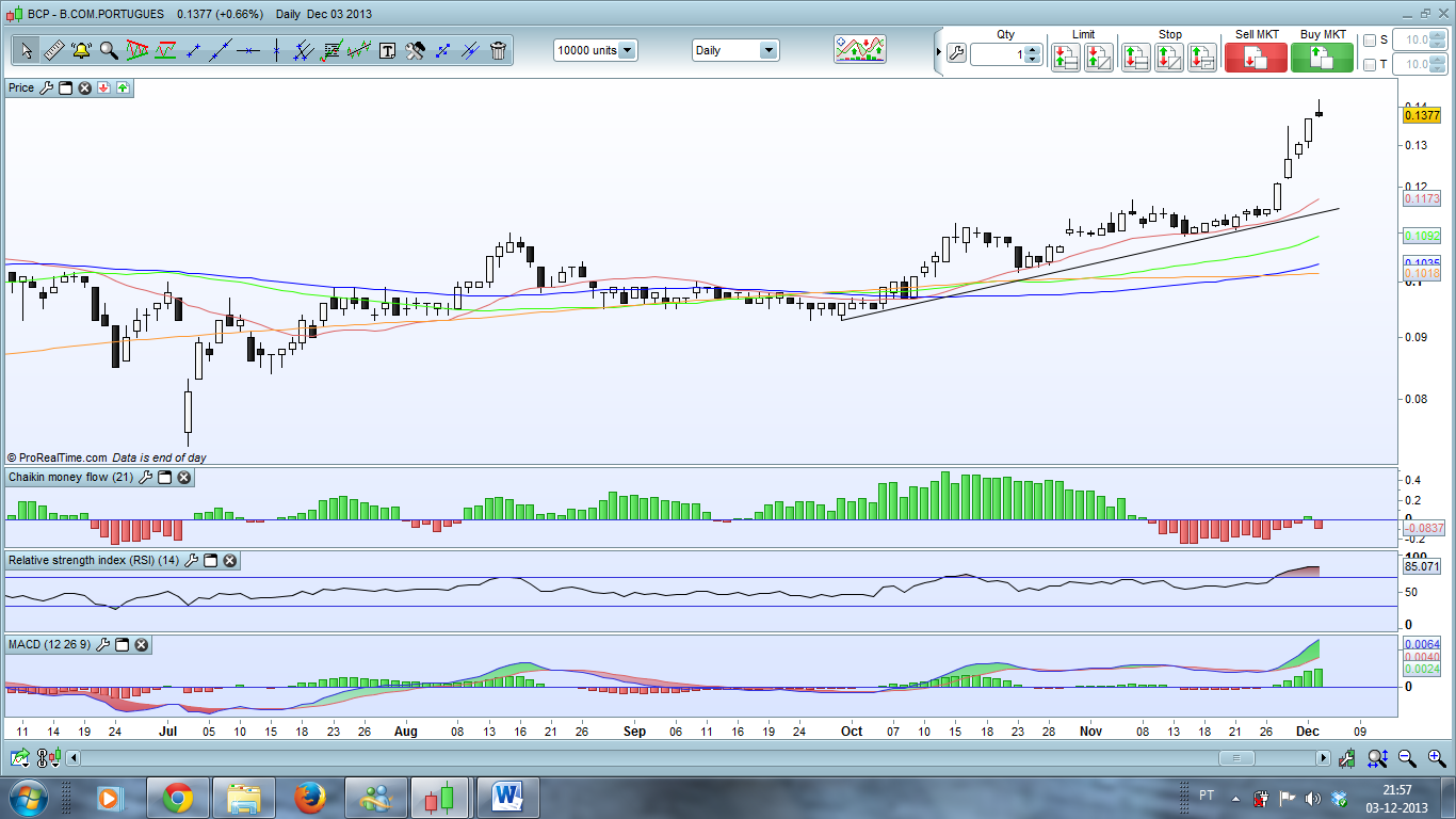 Vamos ver se é para já a correcção de curto prazo, ou se o BCP vai continuar a sua fantástica subida.