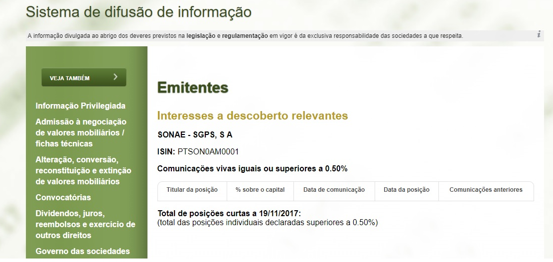 Reparei que deixou de haver Interesses a descoberto ("Comunicações vivas iguais ou superiores a 0.50%") relevantes, na Sonae SGPS...
