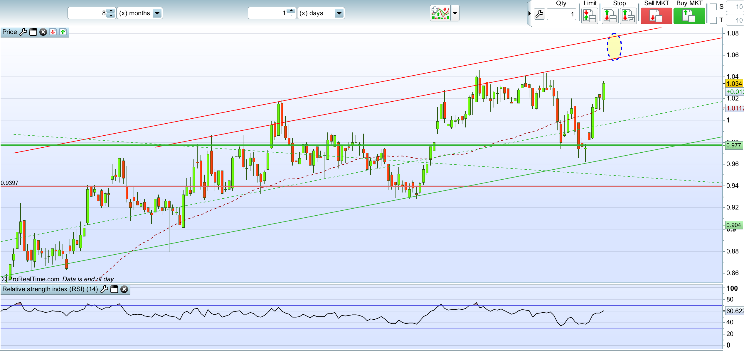 com o cruzar das mm de 20 e 50 dias e com o RSI ainda com margem de progressão, diria que está a caminho de testar novamente o máx do ano nos €1,046.