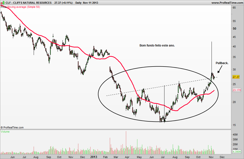 Olha, quando a CLF é preciso ter cautela para já, é verdade que a vela é verdinha, mas face ás subidas desde os 20 USD ( desde inicio de outubro) até agora é uma valorização fantástica, e pode fazer quiçá em breve um reteste ao suporte pelos 24 USD ( o que até seria "saudável")