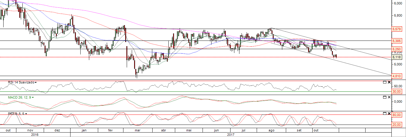 …”Temos no gráfico o mínimo dos 4.81 como um potencial TARGET , se mantiver a tendência de queda intacta ou dentro do canal descendente .”… "
