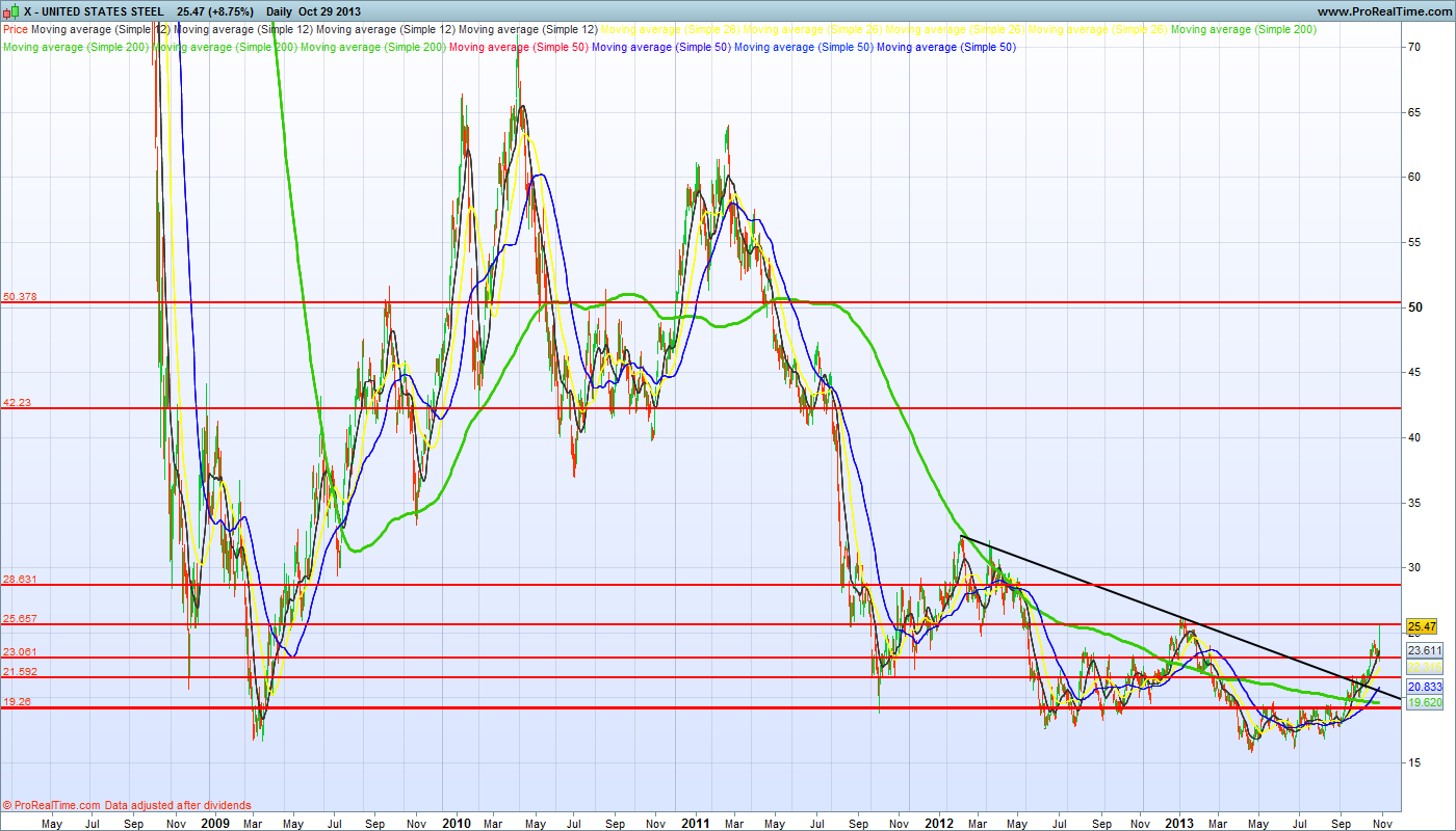 A X desde a rutura consistente pelos 19,30, tem tido um belo desempenho, hoje em dia de apresentação de resultados, para quem entrou da rutura do agora suporte dos 19,30, tinha algum "espaço de manobra" para o risco inerente aos resultados, fazendo hoje uma vela bem verde e com volume.